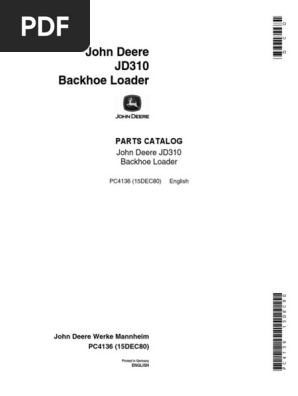 We sell a wide range of new aftermarket used and rebuilt 310 replacement parts to get your machine back up and running quickly. Call our toll-free customer support line today if you have. John Deere 310 Backhoe Loader Parts Catalog Manual.