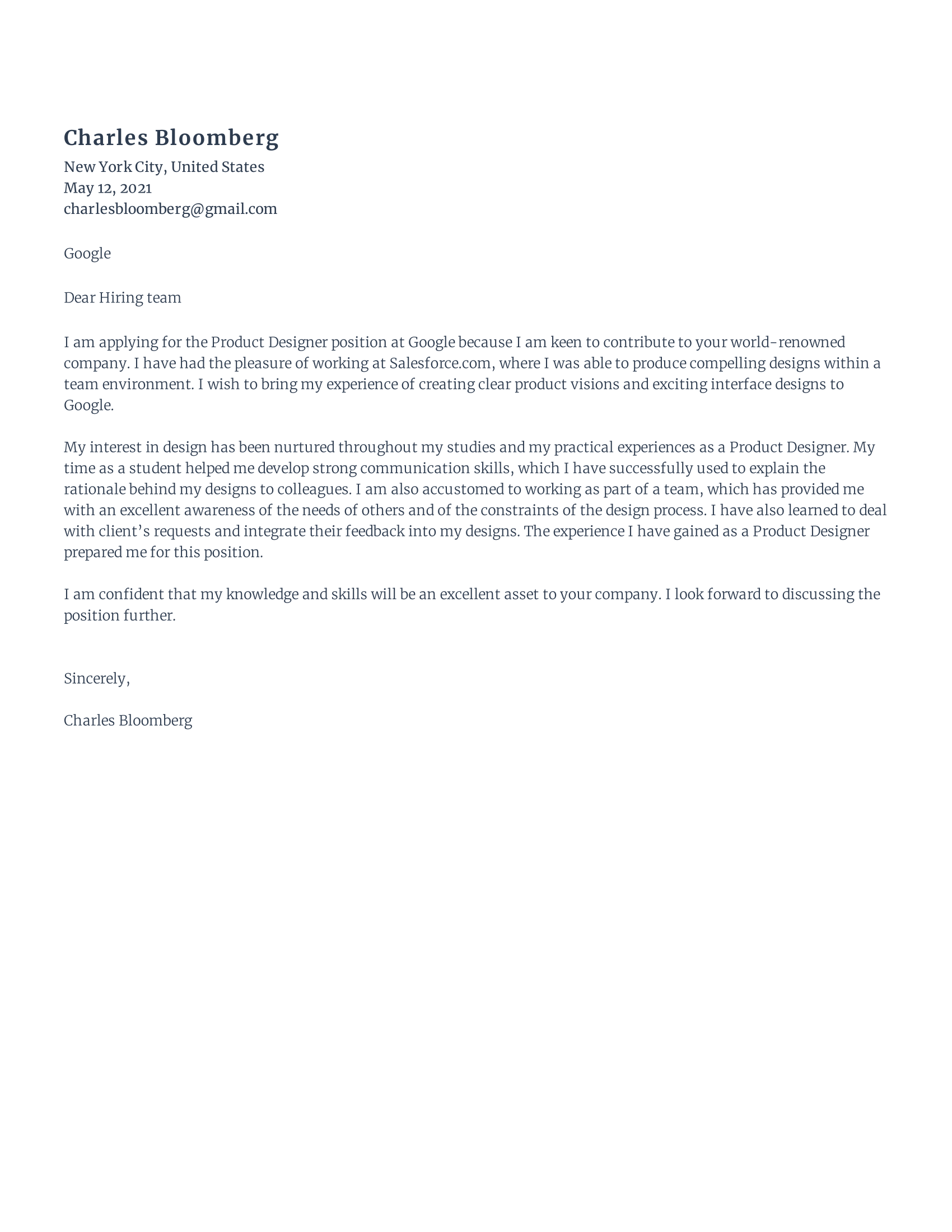 15+ Product Designer Cover Letter