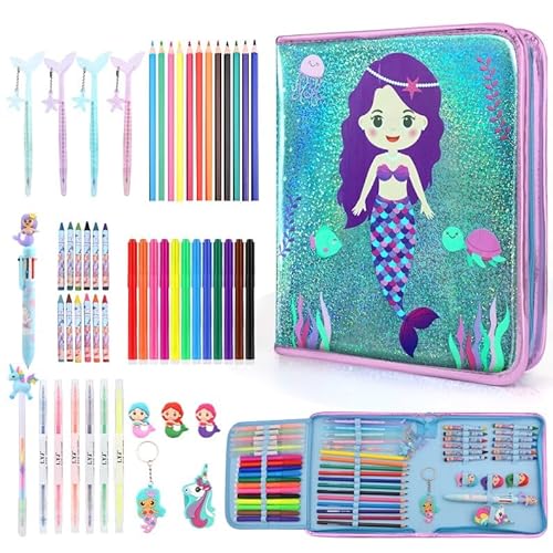 Snapklik Com Valentines Day Gift For Girls Mermaid Fruit Scented Markers Crayons Set 54pcs Art And Craft Coloring Gifts For Girls 4 5 6 7 8 9 2023 Stationery
